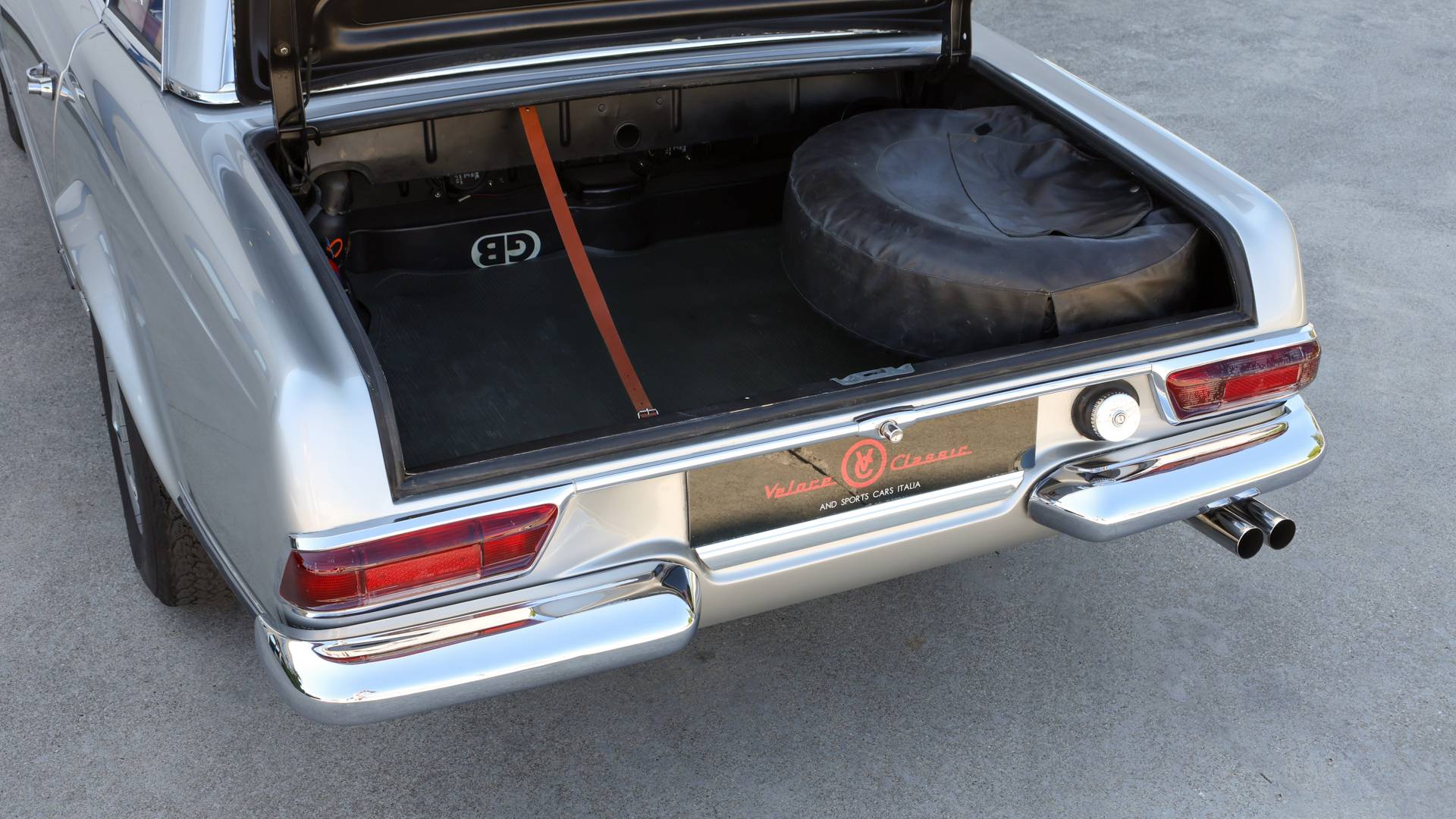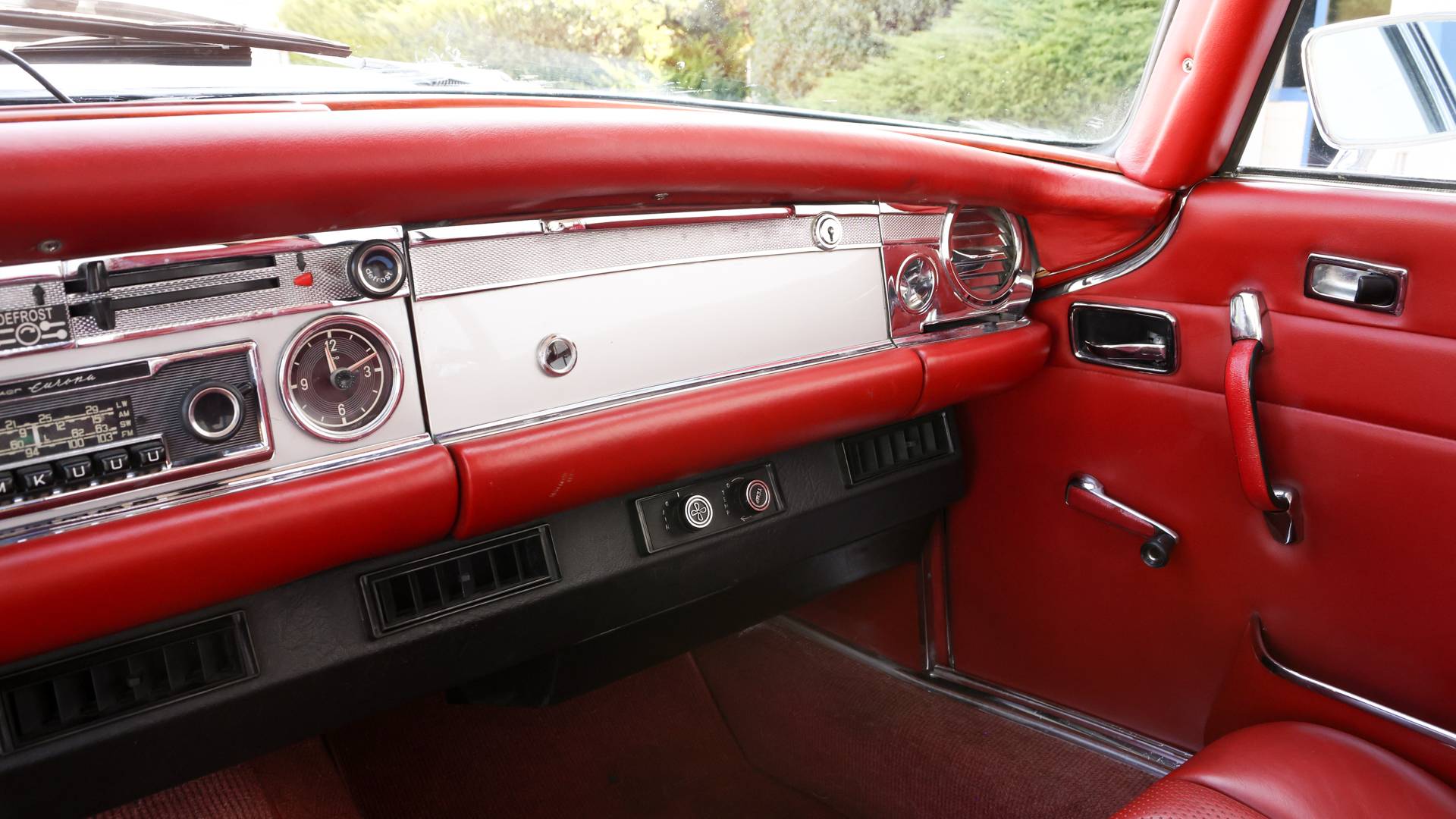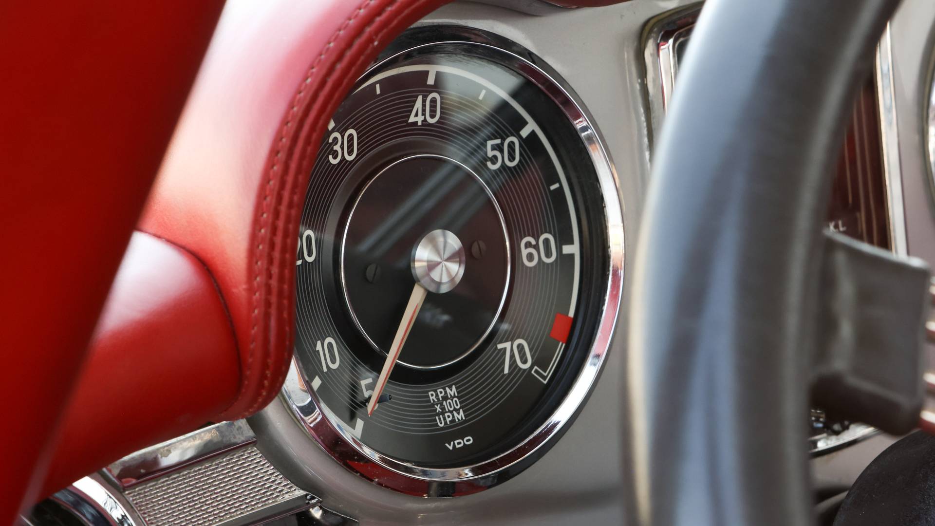Ulteriori perfezionamenti includono l'installazione di un cambio a 5 marce e un sistema di climatizzazione aggiornato, che offre un miglioramento sostanziale rispetto alle unità originali installate dal concessionario. All'interno, un bracciolo centrale dell'Atelier Bracq aggiunge comfort, mentre la classica radio Becker è stata modernizzata internamente per fornire un'uscita RMS 40x4 con Bluetooth, USB e funzionalità digitale. Questo si collega discretamente a un sistema di altoparlanti e subwoofer di alta qualità. Anche l'illuminazione è stata aggiornata con fari alogeni per una migliore funzionalità.