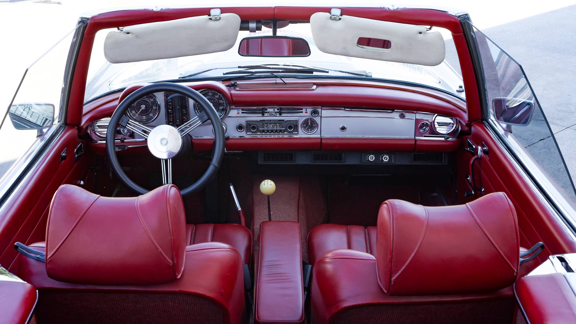 Questa Mercedes-Benz 280 SL Pagoda è un esemplare particolarmente speciale, rifinito con un elegante esterno grigio argento metallizzato D180 e interni in pelle rossa che si abbinano perfettamente al design intramontabile di Paul Bracq. Ritenuta tra le prime 100 unità prodotte, è stata originariamente consegnata al suo primo proprietario a Ginevra, in Svizzera, e da allora ha goduto di una vita privilegiata.