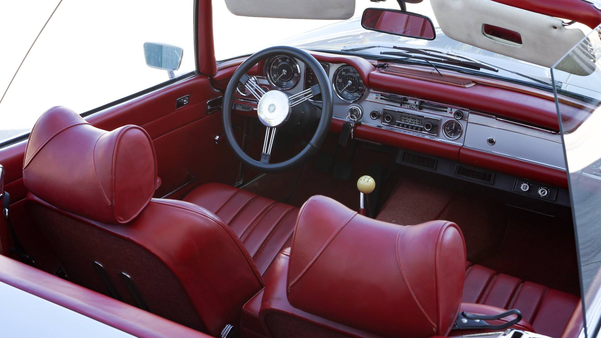 The 280 SL brought meaningful improvements over its predecessors, cementing its place as the most desirable of the Pagoda line. The key advancement was under the hood: the new 2.8-litre inline-six engine delivered 170 hp, offering a smoother power band and stronger mid-range torque, making the 280 SL both a relaxed tourer and a capable high-speed performer. The model retained the excellent balance of comfort and sportiness that defined the W113, with independent suspension, power-assisted disc brakes all around, and precise steering that gave the car a modern feel for its time.